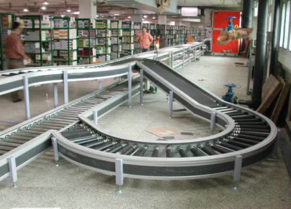 (2)功能多樣,可以按無(wú)動(dòng)力式、動(dòng)力式、積放式等多種輸送方式輸送或積存物品,可以在輸送過(guò)程中升降、移動(dòng)、翻轉(zhuǎn)物品,可以結(jié)合輔助裝置,按直角、平行、上下等方式實(shí)現(xiàn)物品在輥?zhàn)虞斔蜋C(jī)之間或輥?zhàn)虞斔蜋C(jī)與其它輸送機(jī)之間的轉(zhuǎn)運(yùn)。